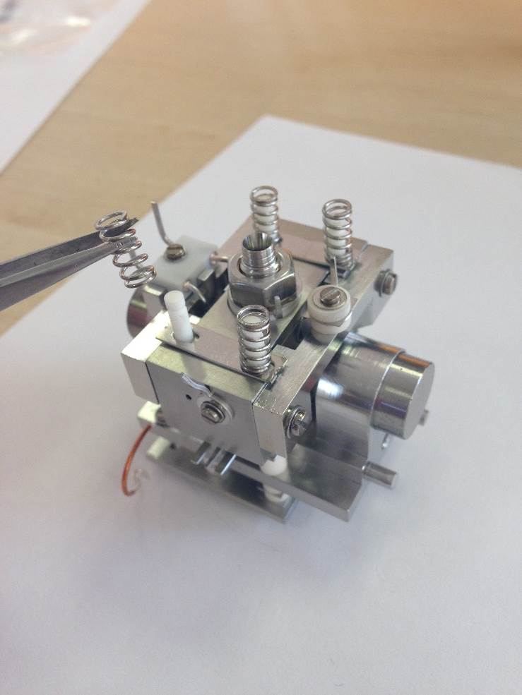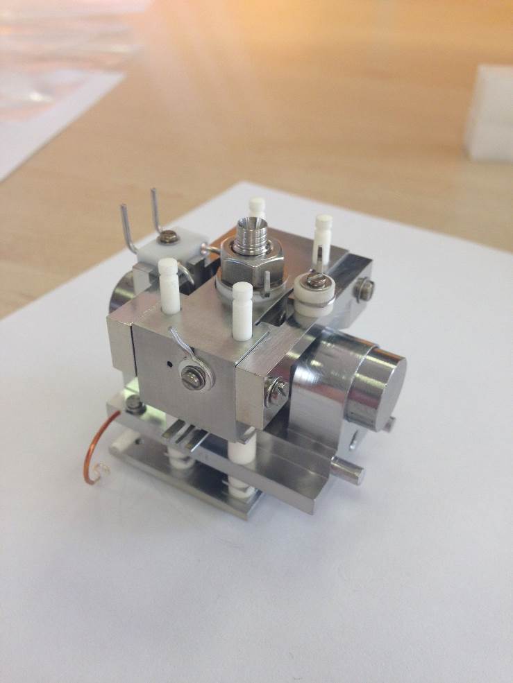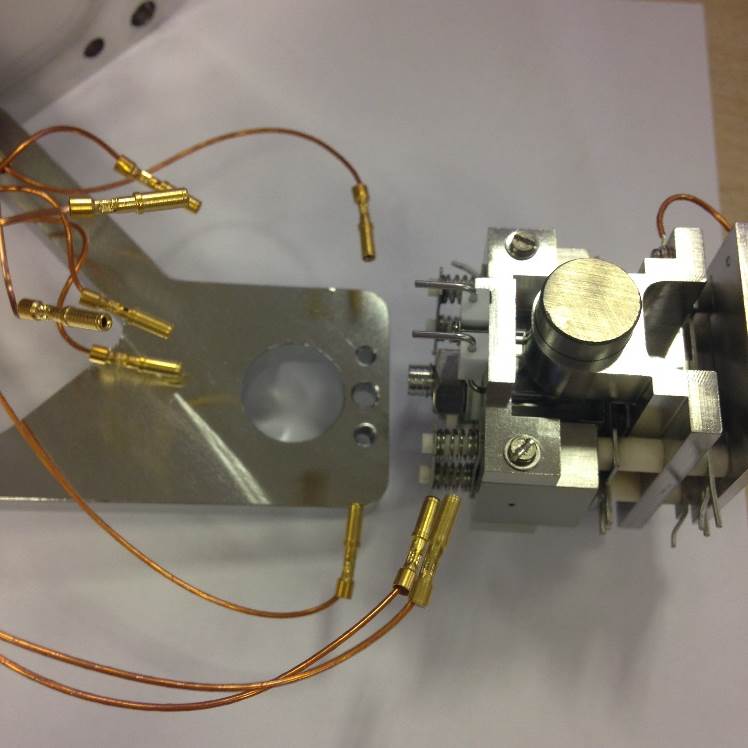 Fit the 4 Ceramic Spacers, 6.0 MM, and the Assembly Slit-Magnet Support with additional fittings (magnet poles, defining slit etc.).