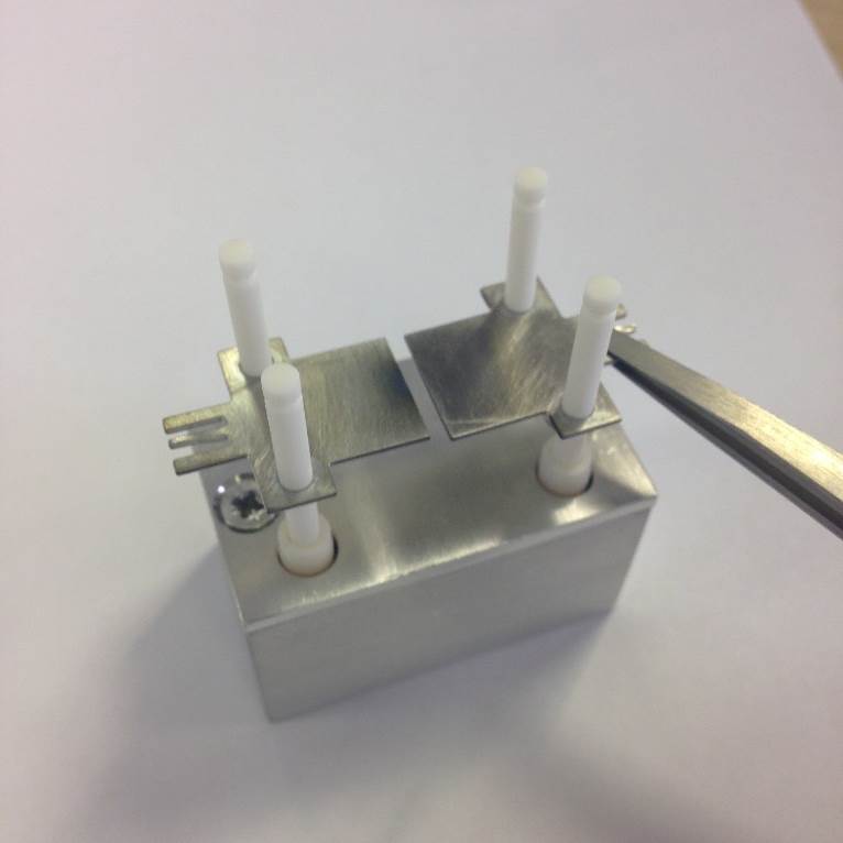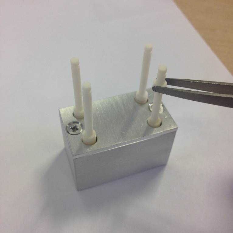 Slide the 4 Ceramic Rods into the location holes in the source jig.