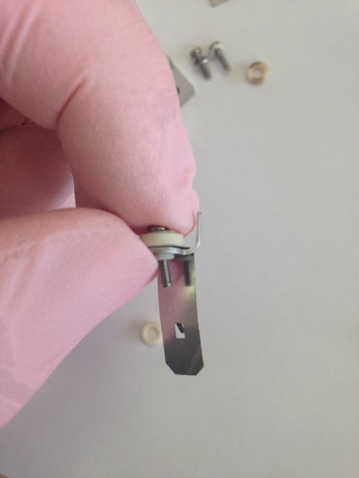 Secure the plate on the trap side with a M1.6 counter-sunk screw and washer.