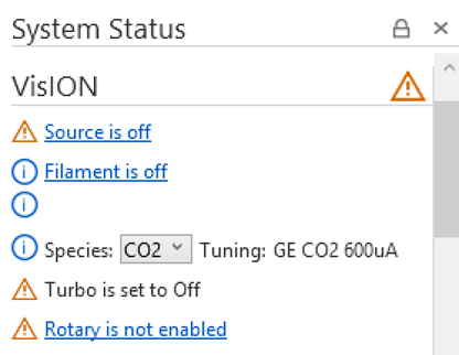 Wait for the turbo speed to fall below 50% and the system should be heard to vent. This process will take a couple of minutes for the turbo to stop fully and the vacuum to reach atmospheric pressure. Once the Low Vacuum gauge reaches ~1013mBar the source flange may be removed to reveal the source.