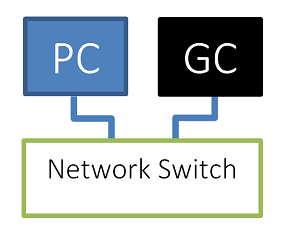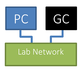 Figure 5-32: PC and GC connected to the same network switch and the network switch connected to the laboratory network
