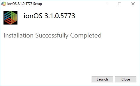 Once installed, either click Launch to close the installer and start IonOS or click Close to close the installer without starting IonOS.