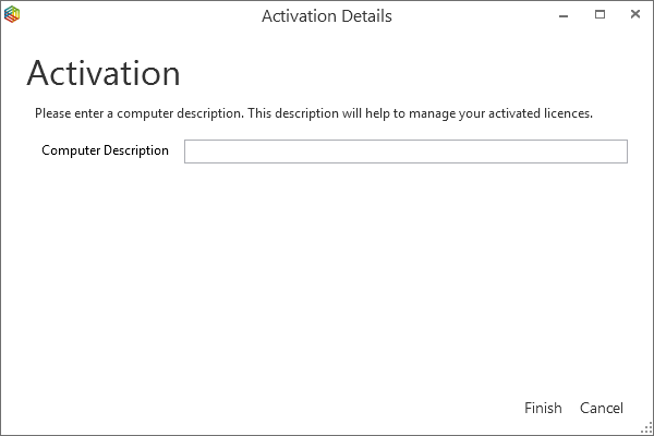 Activation requires a description of the computer to be entered. This allows for easy management of license files and activations via My IonOS. For example, you will be able to see the computer descriptions of where your licenses have been activated.