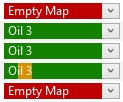 Peak Map Success Indicator showing some injections that are not associated with a Peak Map ("Empty Map") and some that are associated with the "Oil 3" Peak Map. One of the indicators is displaying a potential issue with one of its peaks.